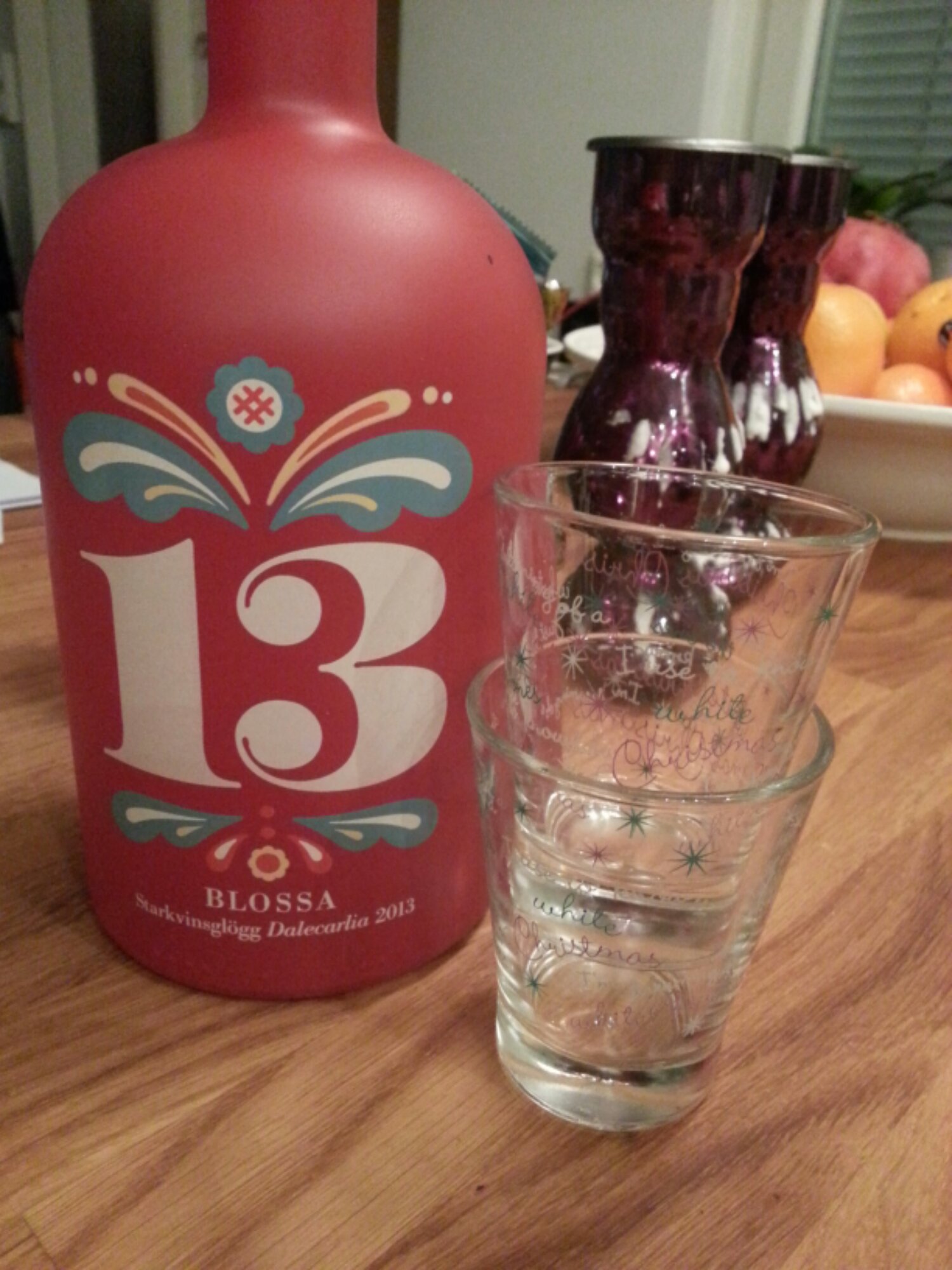 Färgen är ljust rosa och alla traditionella glöggkryddor finns där, plus någonting mer. Det är svårt att hålla sig helt objektiv när man hört vad alla andra har tyckt, men jag försökte se, lukta och smaka mig till min gissning. Vi båda här hemma var överens om att glöggen var ovanligt god och att den nästan smakar lite saft. Tidigare år har jag mixat den vanliga Blossa alkoholfri glögg med bacardi razz, just för att det blir lite festligt och smakar saft! Och jag tycker att smakerna i årets glögg påminner om den blandningen. Temat för glöggen är Dalarna, och då blir ju den solklara gissningen åkerbär!