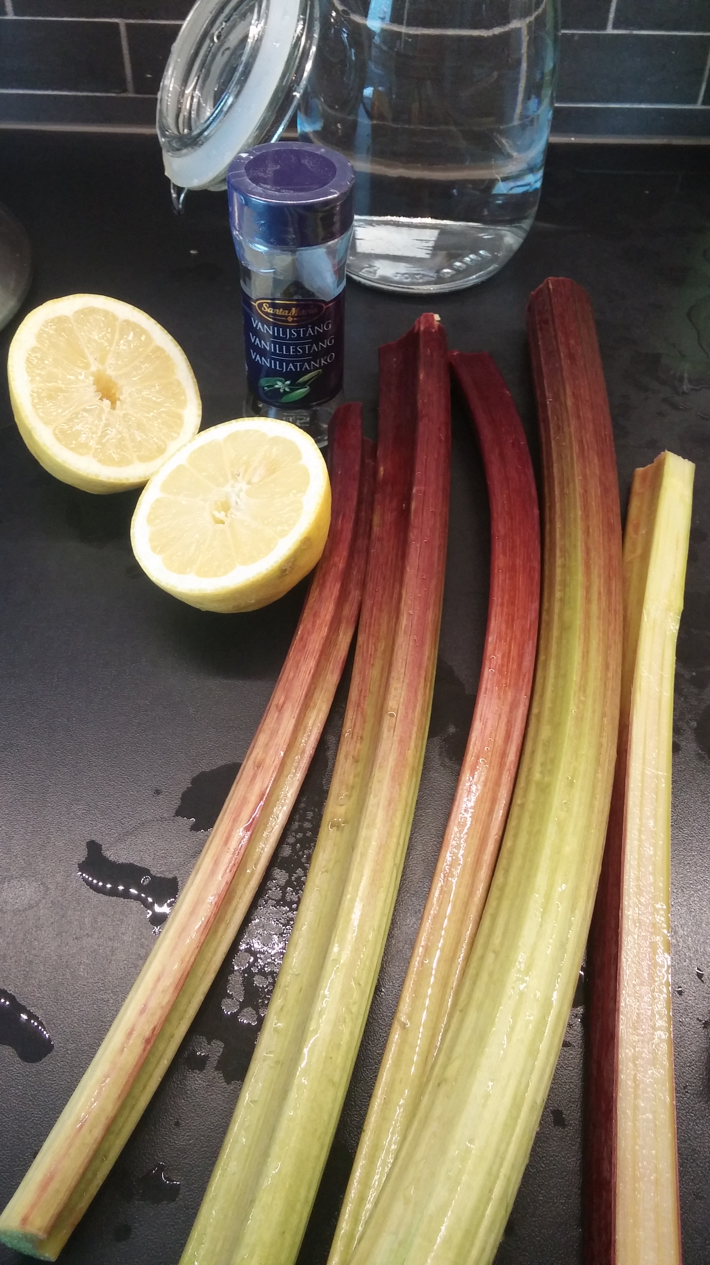 I höstas planterade vi en rabarberplanta i vårt lilla land och den har verkligen växt till sig redan nu under sin första sommar! Jag har läst en del om att man ska skörda försiktigt första året, men den har verkligen bombat oss med rabarberstjälkar, så jag kunde inte låta bli! Jag provade på att göra rabarbermarmelad i början på sommaren, och efter första satsen så har jag gjort den i tre omgångar till. Det är så himla gott och perfekt till ostbrickan! En av snittarna på vårt bröllop var hemmagjort fröknäcke med en skiva brieost toppat med min rabarbermarmelad och de gick åt i en svindlande fart. Så jag tänkte dela med mig av receptet på Rabarbermarmelad med vanilj & citron. För en vecka sedan gjorde jag en sista skörd i landet och stjälkarna var betydligt träigare nu i slutet av sommaren men det smakade fortfarande lika bra i marmeladen.