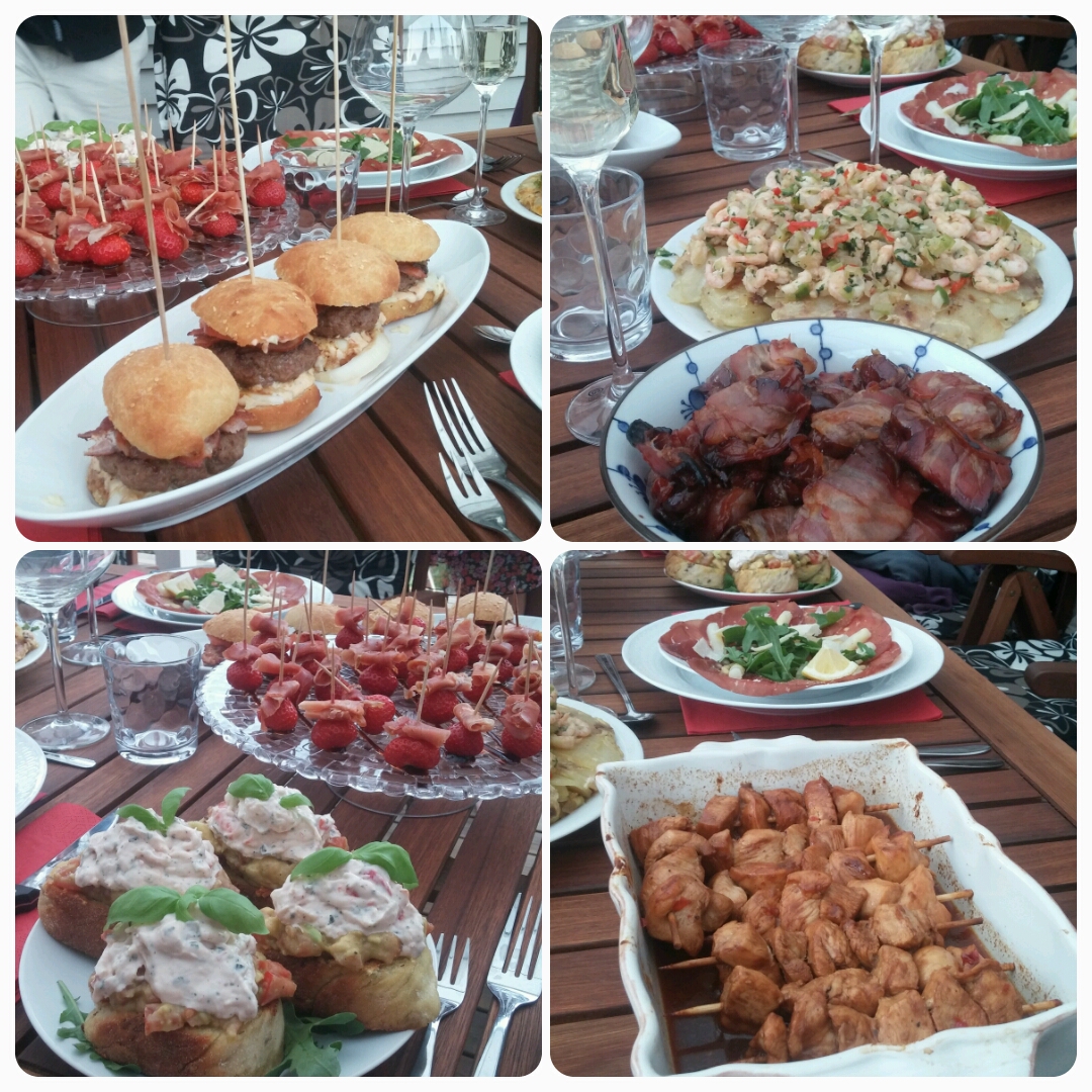 Vi hade en helt otroligt härlig fredagskväll ihop med våra kära vänner. På agendan stod tapaskväll och precis som sist vi sågs anordnade vi tapasknytis! Sist sa vi tre rätter var, men vi fuskade allihopa med mängden vilket resulterade i ett överfyllt bord av mat som ingen orkade äta upp. Inför denna kväll sa vi därför fyra SMÅ rätter var, utan fusk, och bordet blev ändå översvämmat avsupergoda smårätter. Vi skålade i både rött, vitt och mousserat vin och verkligen allt var supergott. Jag har tänkt dela med mig av några recept, åtminstone på en av mina tapasrätter, men också den wonderbara efterrätten som jag bjöd på. Tills dess får ni hålla till godo med ett collage av allt som serverades.